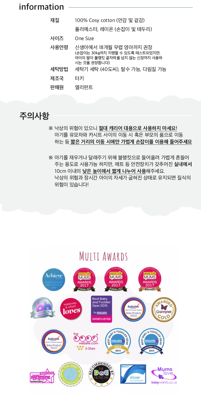 사용연령: 신생아에서 18개월 무렵의 영아